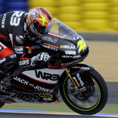 Il romano Simone Corsi ha ottenuto il miglior tempo nel warm up della classe 125 sul circuito di Le Mans, dove alle ore 11 prenderà il via il quinto appuntamento stagionale del motomondiale 2008. Con la temperatura dell’aria vicina agli 11 gradi, con un tasso di umidità dell’83% e la temperatura dell’asfalto intorno ai 13° il pilota del Team WRB iJack & Jones ha fermato il cronometro sull’ 1’44″855 precedendo di 131 millesimi la KTM del Team Repsol di Esteve Rabat e di 215 millesimi il compagno di squadra Nicolas Terol.