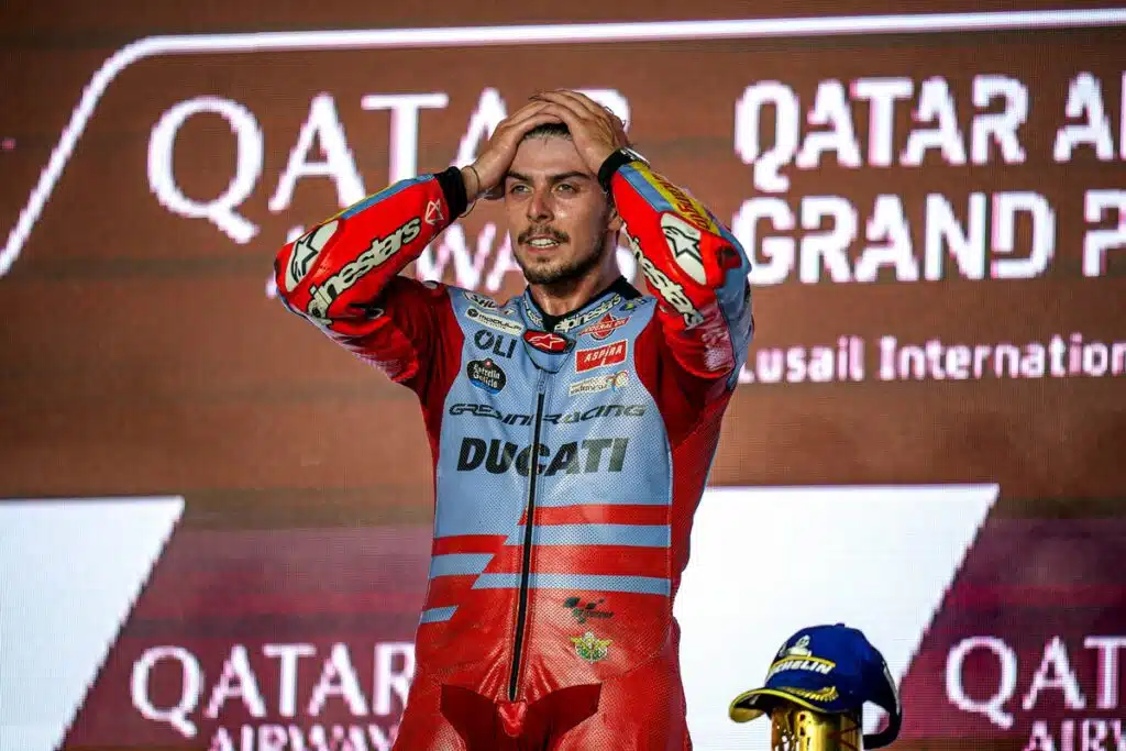 MotoGP GP Qatar Ducati Gresini – Fabio Di Giannantonio sta vivendo un mix di emozioni difficili da descrivere, al Lusail International Circuit ha vinto la sua prima gara in MotoGP, ma è ancora a piedi in ottica 2024.