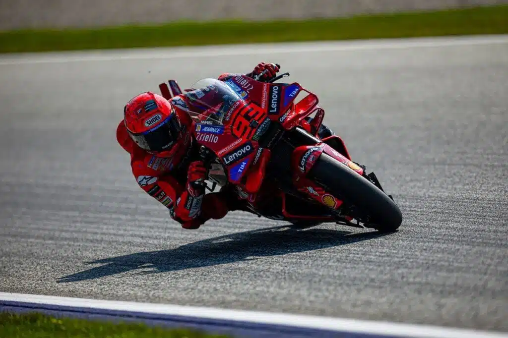 L’otto volte iridato ha portato in testa la Ducati GP 25 Factory con il crono di 1:37.956, unico pilota a girare sotto al “muro” del minuto e 38 (la pole di Toprak Razgatlıoglu in Superbike era stata di 1:38.357, ndr).