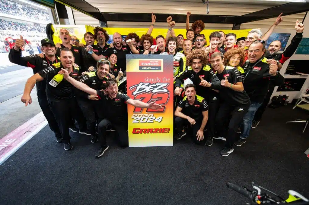 Un lungo abbraccio e un arrivederci ricco di emozioni per Marco Bezzecchi che lascia il Pertamina Enduro VR46 Racing Team dopo 5 stagioni insieme tra Moto2 e Top class. Marco saluta la squadra con il nono posto al traguardo del Solidarity GP.