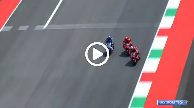 GP Mugello – Vi riproponiamo le immagini della lotta emozionante tra Marc Marquez, Alex Marquez e Francesco Bagnaia nelle fasi iniziali della Sprint Race del Gran Premio del Mugello. Dopo un errore alla partenza per via del launch control non attivato, Marc Marquez ha recuperato subito terreno, raggiungendo Alex Marquez e Francesco Bagnaia, con i quali ha dato vita ad una bellissima lotta. Lo spagnolo ha conquistato la vittoria e ora ha un vantaggio di 35 punti sul fratello Alex e 93 su Francesco Bagnaia.