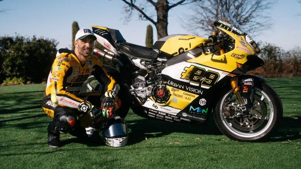 Il pilota di Vasto, tornato in sella dopo una squalifica di quattro anno per doping, sarà in sella alla Panigale V4R con una livrea dove domina il giallo con il #29 ben in vista ai lati della carena.