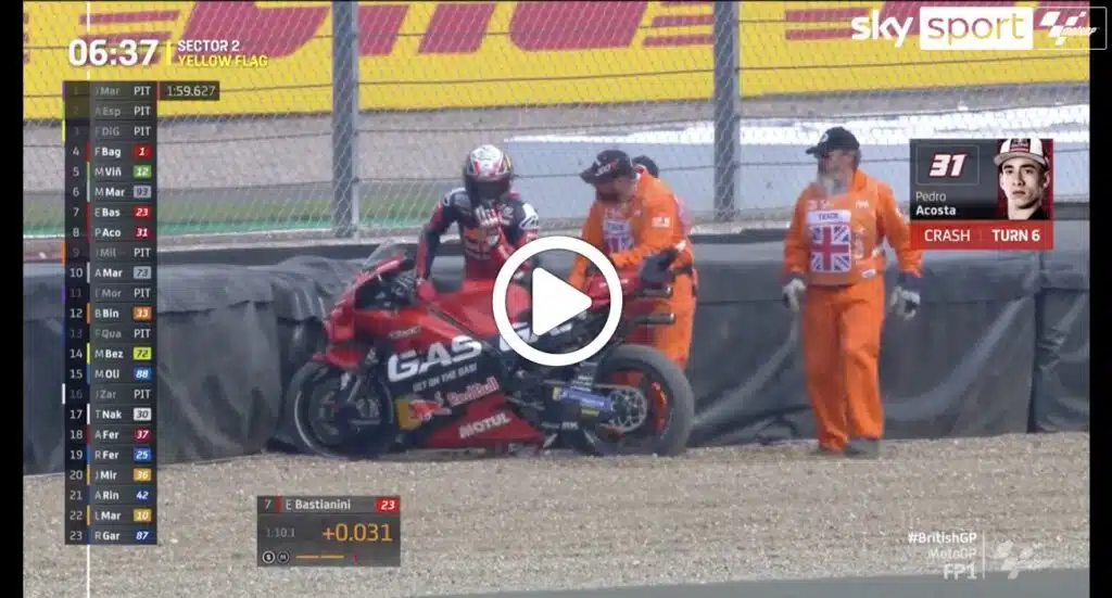 MotoGP | Acosta lungo nella ghiaia nelle libere a Silverstone [VIDEO]